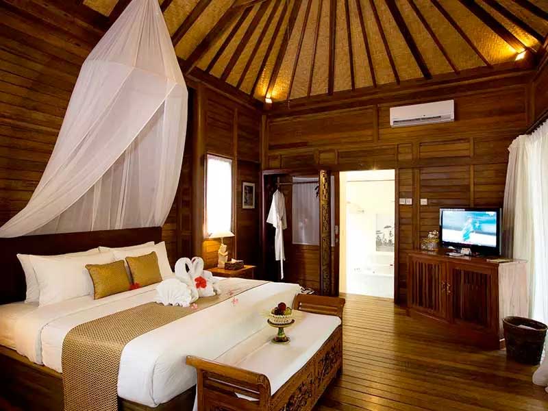 The Villa Residences are located in the extensive gardens of the resort, and can accommodate 2 people. Free standing bungalows, some with wooden interior and/ thatched roofs, some with semi-open bathrooms, or spacious luxurious bedrooms containing fine examples of outstanding artworks, furnishings and other treasures. Classic and traditional types available.